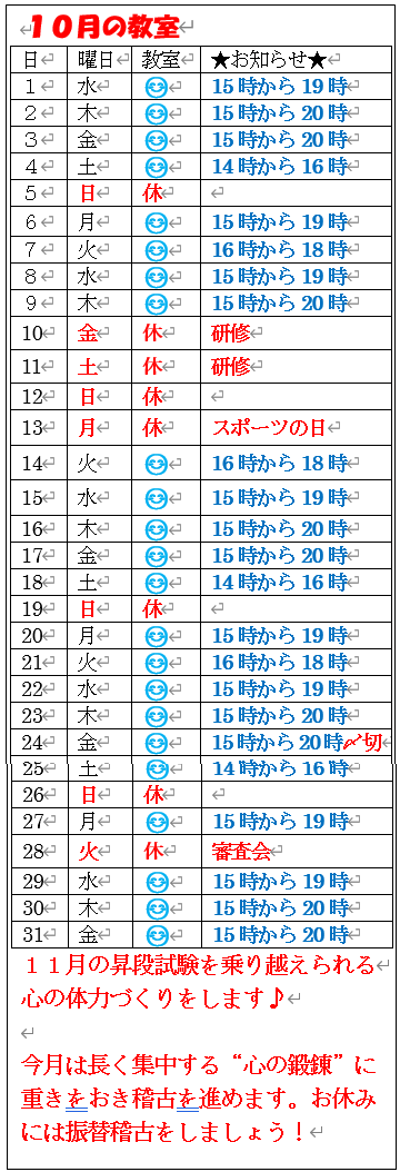 もうすぐ秋休み♪ 教室はふだん通りopenしますよ(^_-)-☆